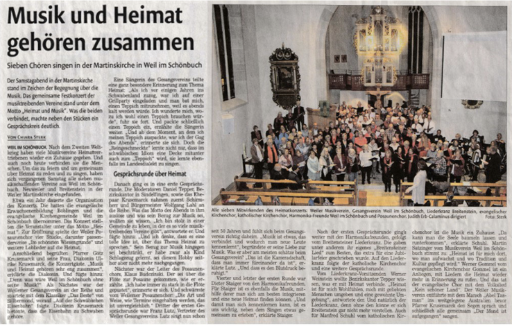 Gemeinschaftskonzert von 7 musiktreibenden Chören und Orchestern von Weil im Schönbuch unter dem Motto "HEIMAT" am 17.11.2018 in der Martinskirche in Weil im Schönbuch