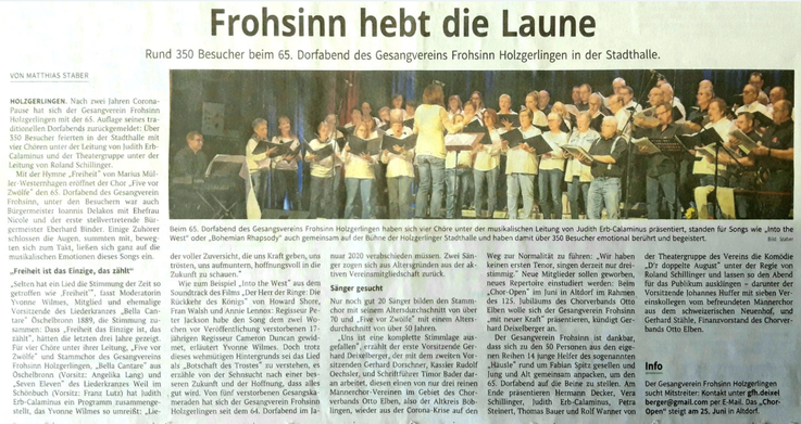 Mitwirkung beim Dorfabend in Holzgerlingen am 04.02.2023