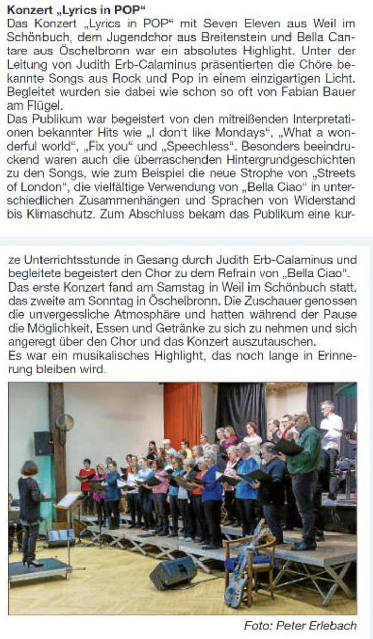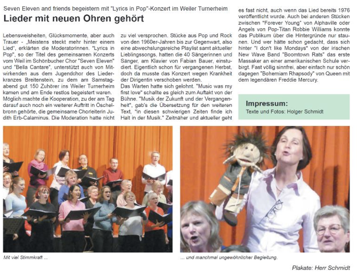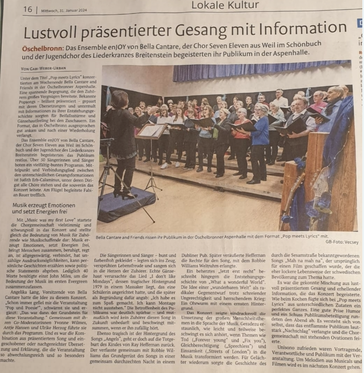 "Lyrics in Pop" Konzert im Turnerheim am 27.01.2024 in Weil